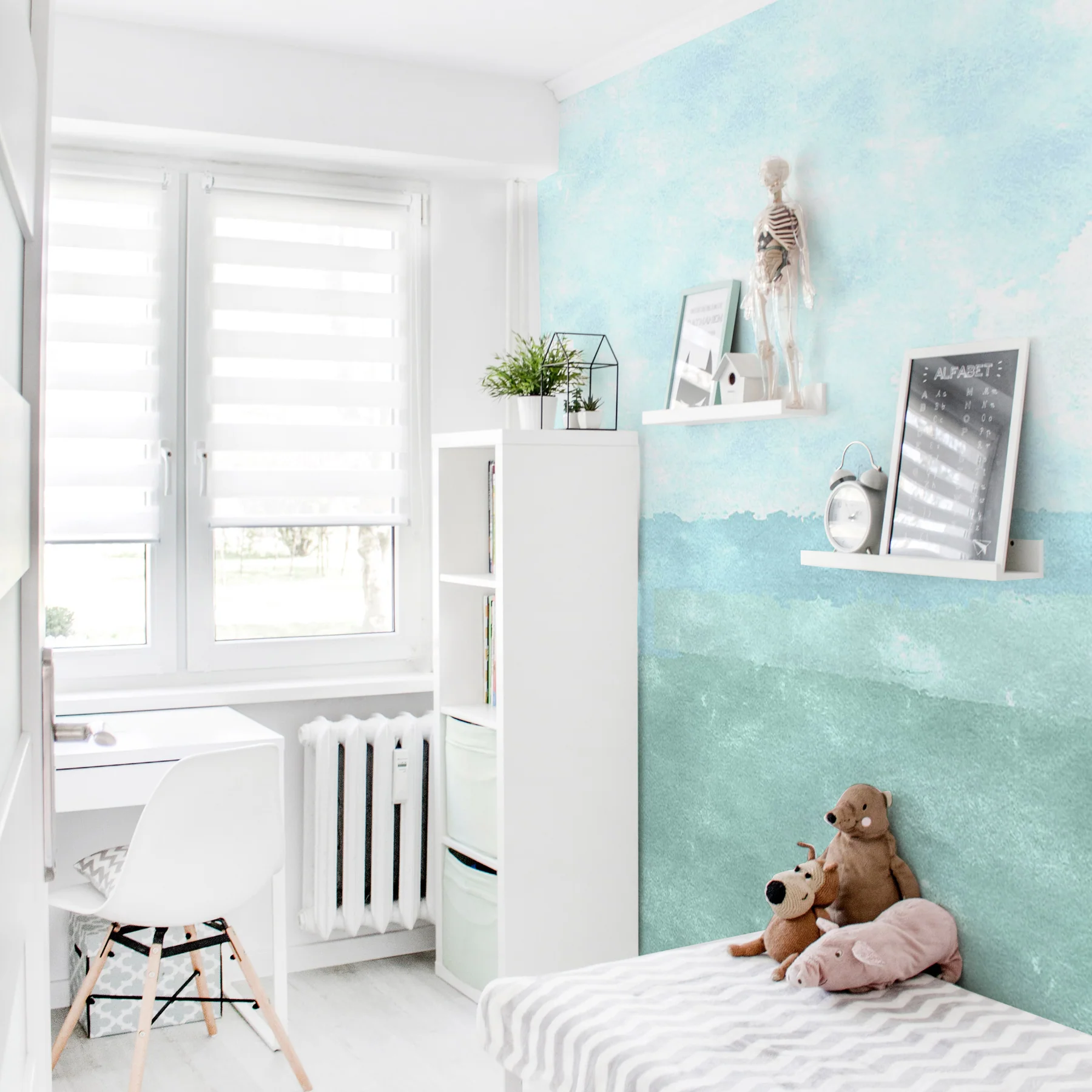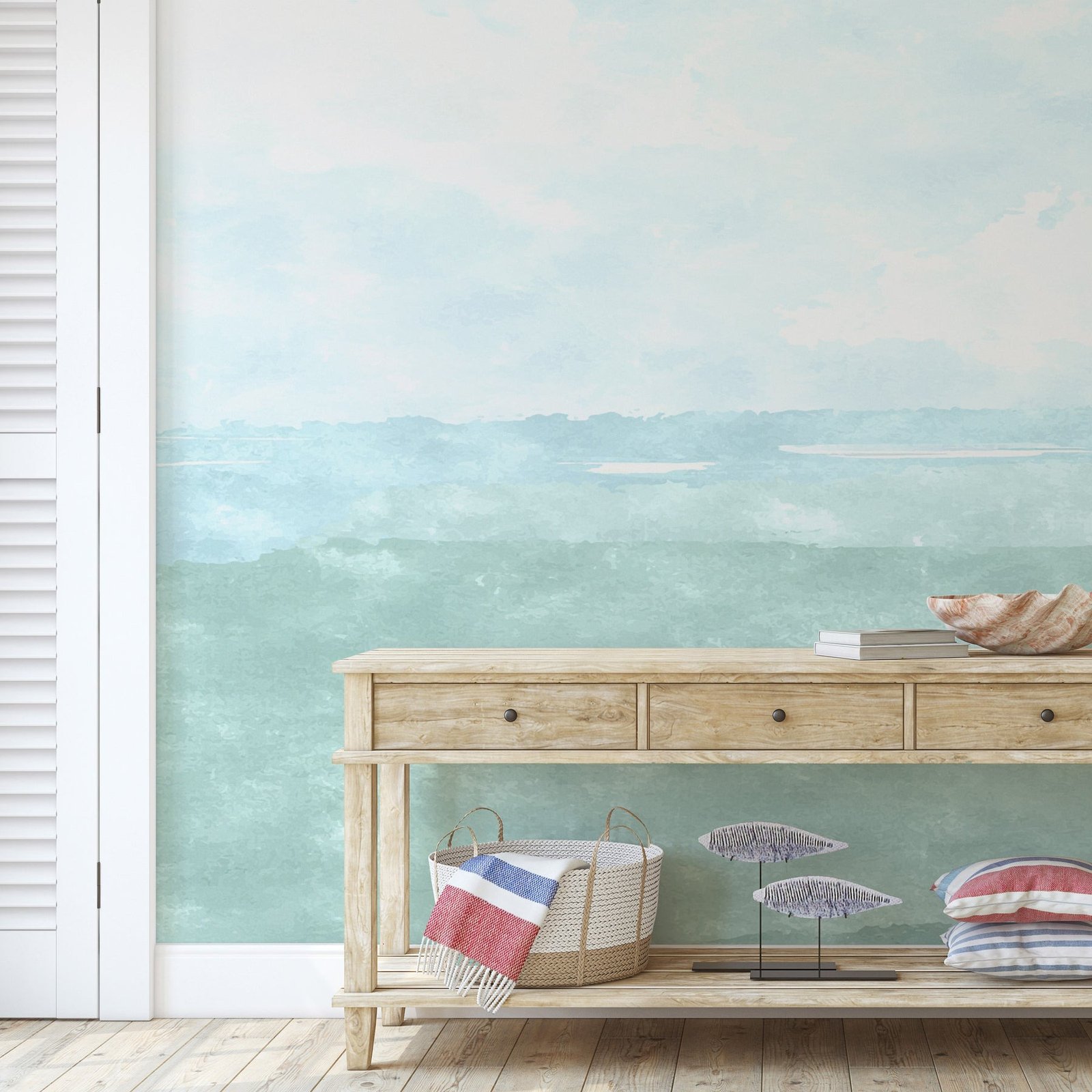 Arabian Sea Wallpaper features a dreamy abstract watercolor mural inspired by flowing ocean tones.