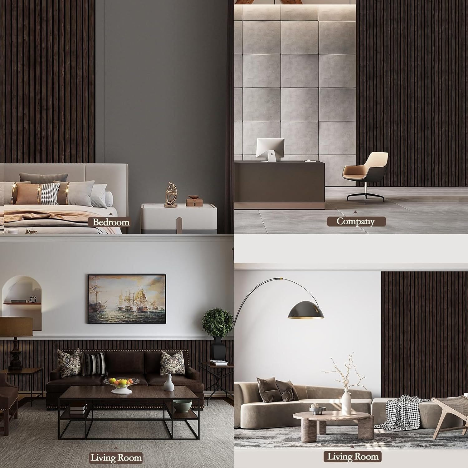Enhance your space with these 3D wood-finish soundproof wall panels made from high-density polyester fiber. They combine stylish wood grain aesthetics with superior sound absorption for crystal-clear audio and a cozy ambiance. Easy to install with adhesive, these panels are perfect for studios, home theaters, offices, and living spaces.