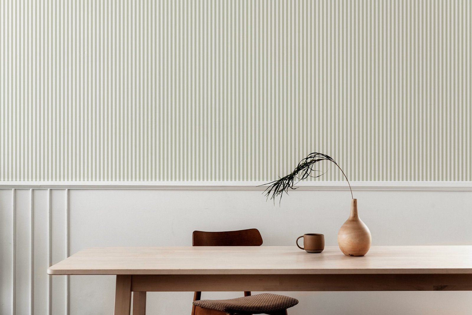 Ferny Sage Wallpaper offers a classic striped look inspired by timeless Victorian design.