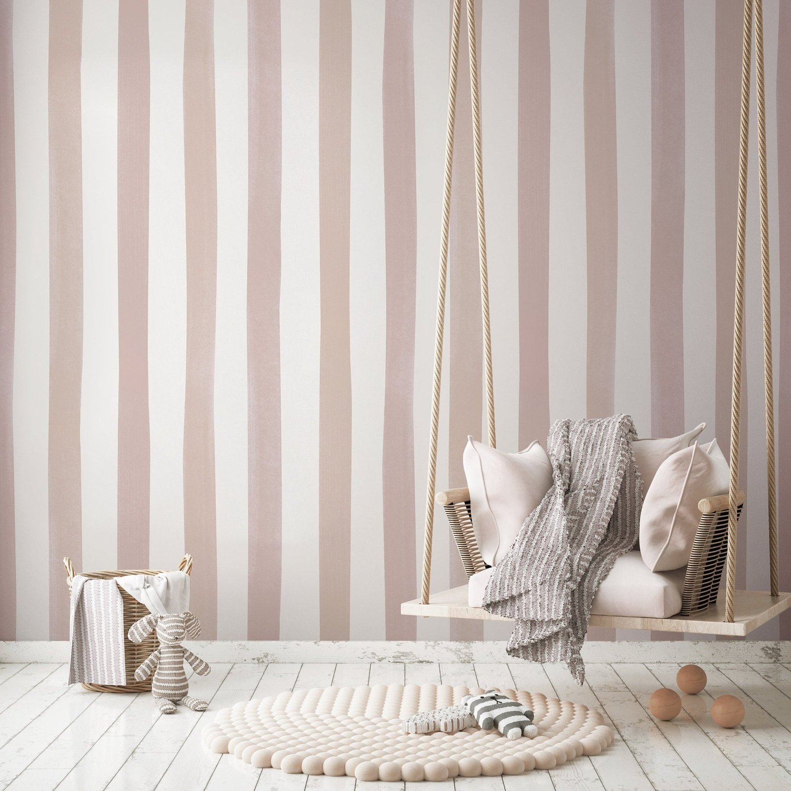 Rose & Blush Wallpaper features alternating watercolor stripes in soft rose pink and blush tones.